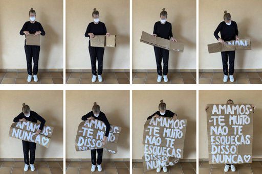 É um projecto artístico de Maria Beatitude. Trata-se de mensagens afectuosas e coloridas, realizadas em grande escala (140 x 98 cm) que, contudo, e num efeito surpresa, são remetidas dentro de um envelope de tamanho convencional a alguém idoso que se encontra num lar. Esta é a sua primeira amplitude, relacionada com a materialidade efectiva, plástica, formal, do objecto. A outra amplitude tem, naturalmente, que ver com a dimensão emocional e afectiva do trabalho em questão. E esta dimensão é francamente relevante, numa época em que a COVID-19 colocou o mundo num estado pandémico, perigoso e incerto.
