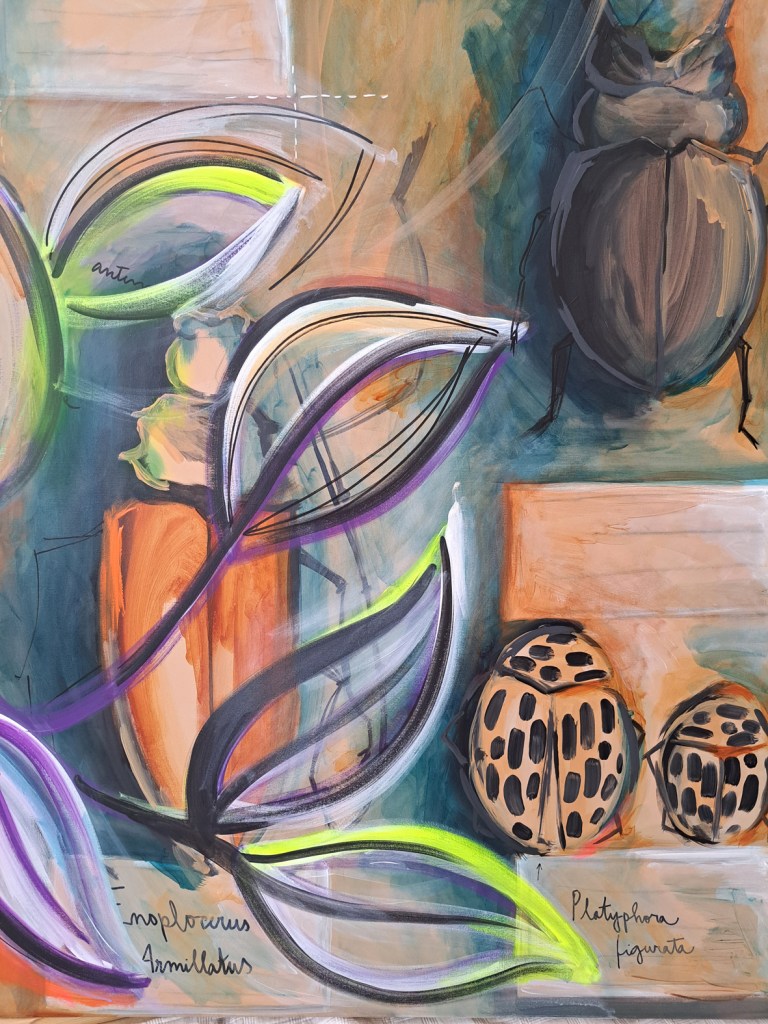 Uma obra que retrata alguns insectos numa escala que ultrapassa em muito o seu tamanho real, mas não a sua importância no equilíbrio do ecossistema.