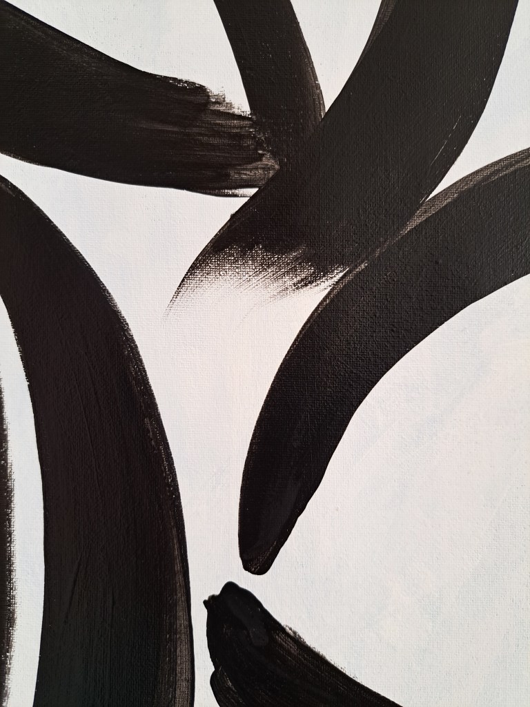 The blue moments of “pause” are broken by the strong image of what could be leaves, and between them you can read: “lying down just watching time go by, i got lost in an infinite blue”. In the next frame, like a half-closed eye, only the contrasting black line remains in the field of vision and in the memory and, like a hot afternoon, the eyelids eventually give way… “and I fell asleep”.