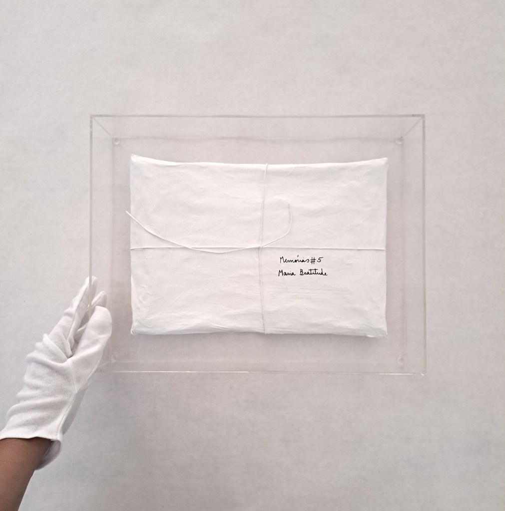 “Embrulho memórias / Wrap memories #4” | papel machê | caixa acrílico/ acrylic box 36x28x7 cm | 750€