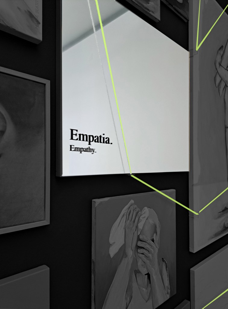Nessa parede, entre várias peças, estava um espelho que representava a empatia.