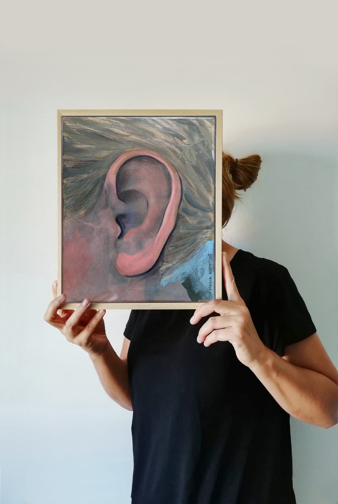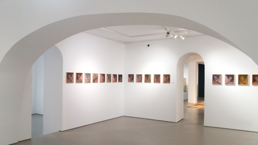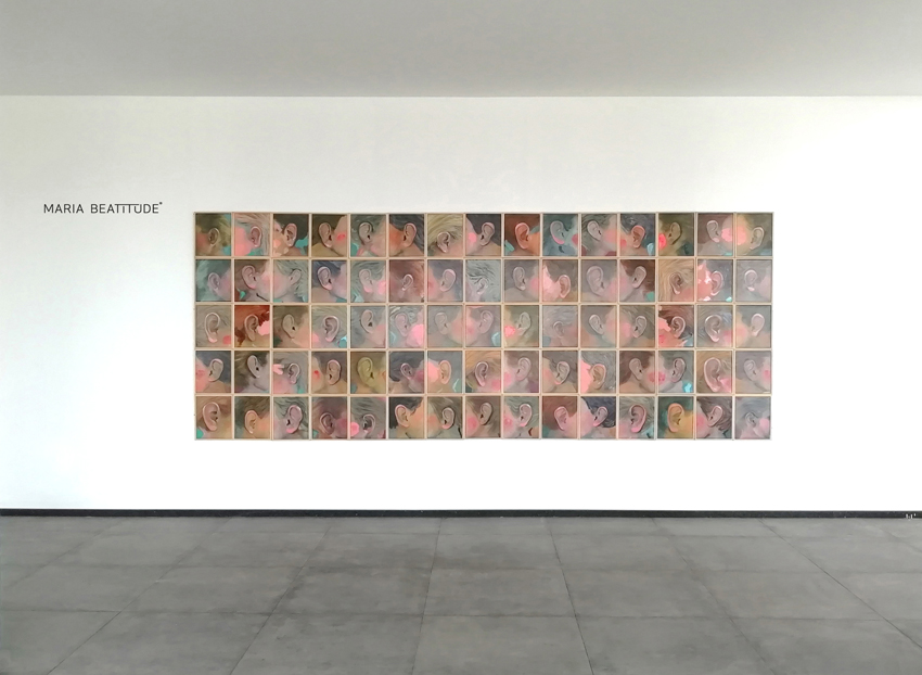 A room that surrounds us with works from the series ” Listen ” imposes reflection on the theme.