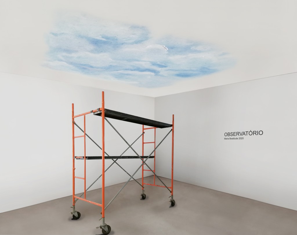 Tinha acabado de fazer obras no atelier novo. Quando confinamos em Março de 2020 o electricista deixou o andaime fechado lá dentro. O resultado foi este.