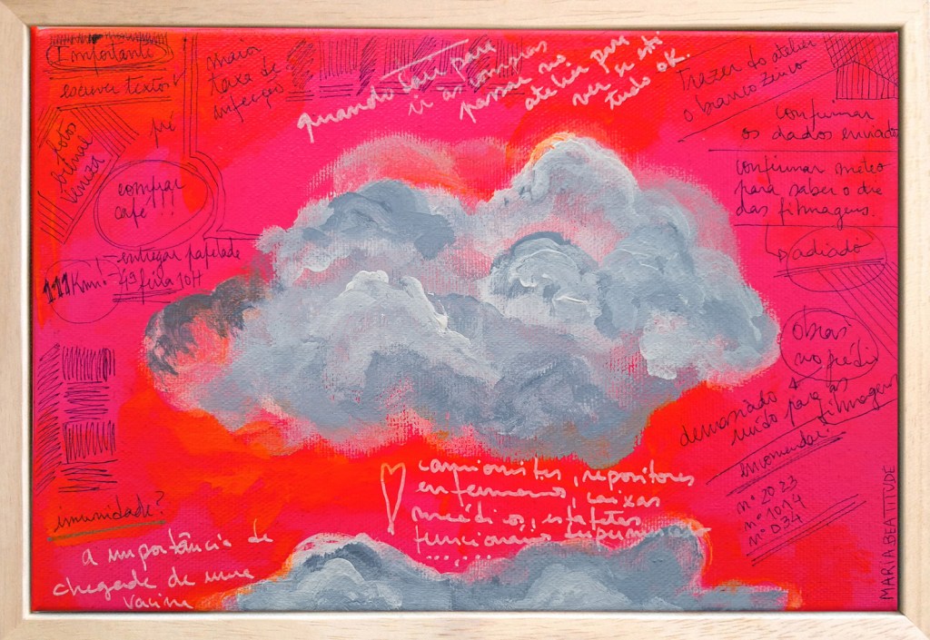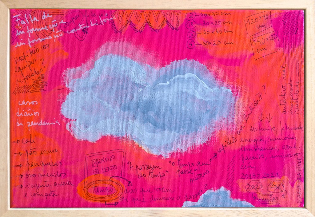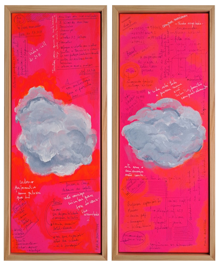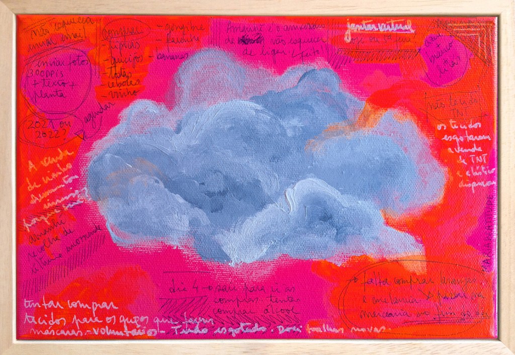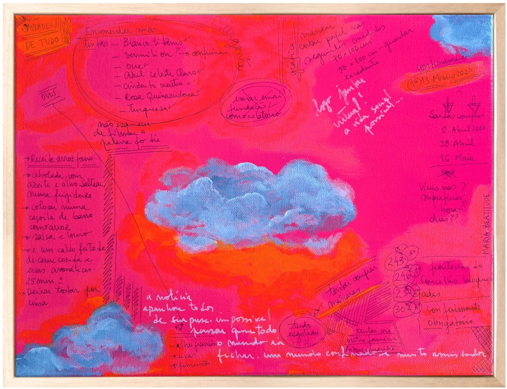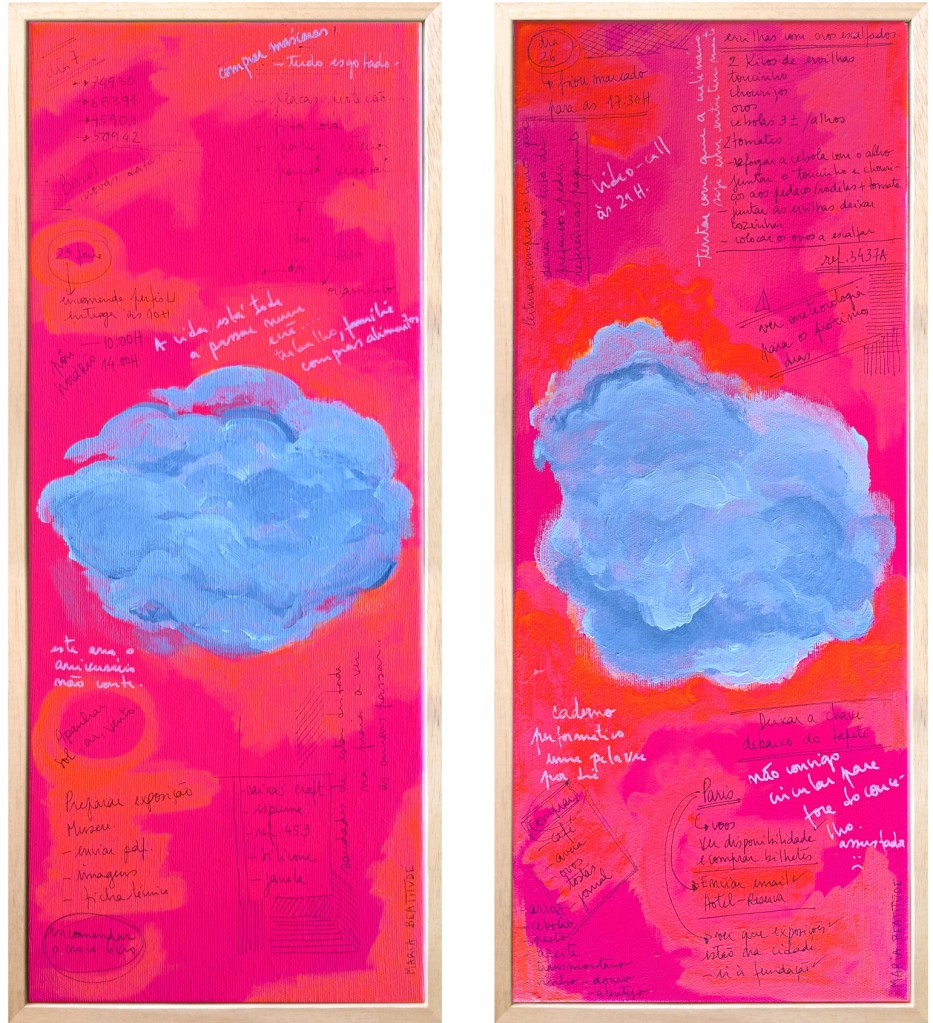 Shopping lists from the supermarket, random strokes, ink colors, references, passwords, recipes, etc, are some of the things that make up this work, as well as the days spent looking at the sky waiting for a miracle.
